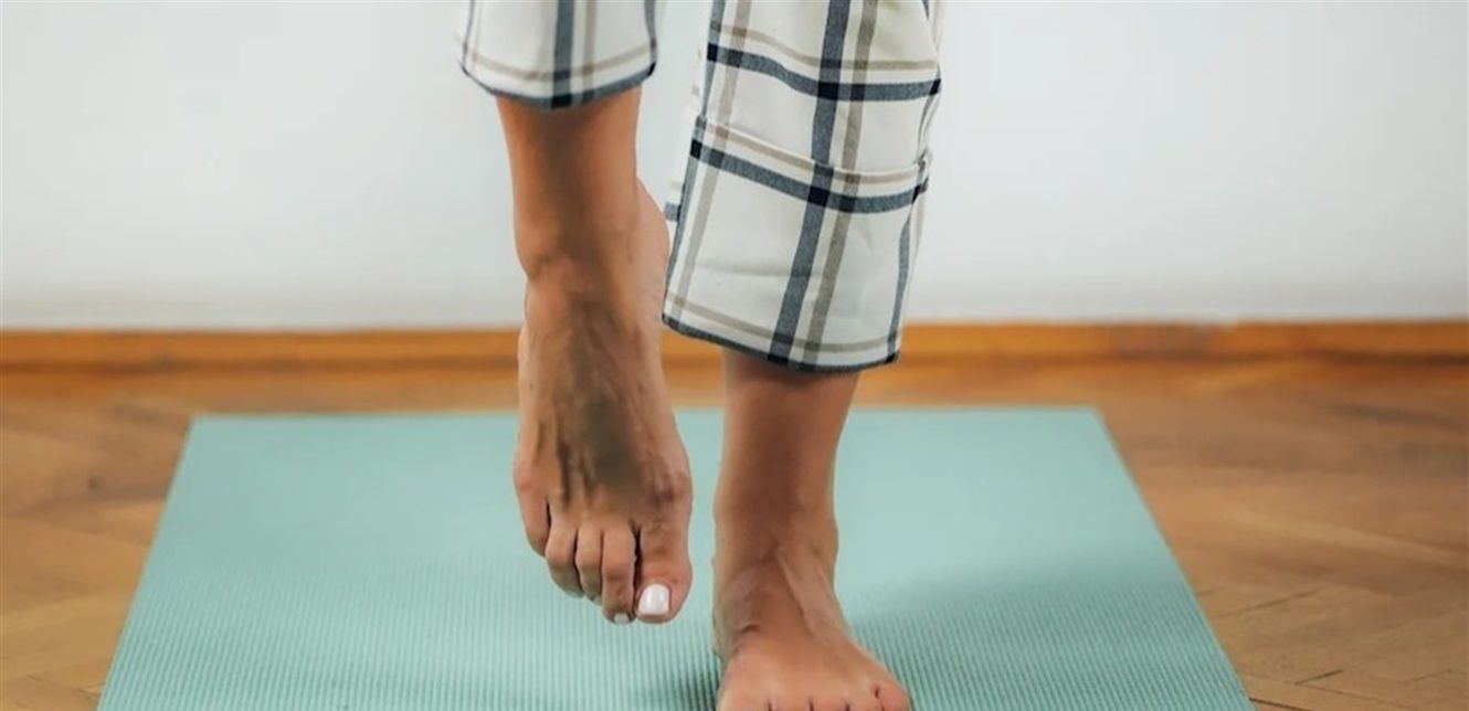 كما يتضمن تمرين آخر وضع إحدى القدمين أمام كعب القدم الأخرى مباشرة والحفاظ على هذه الوضعية لمدة 10 ثوانٍ قبل تبديل القدمين.