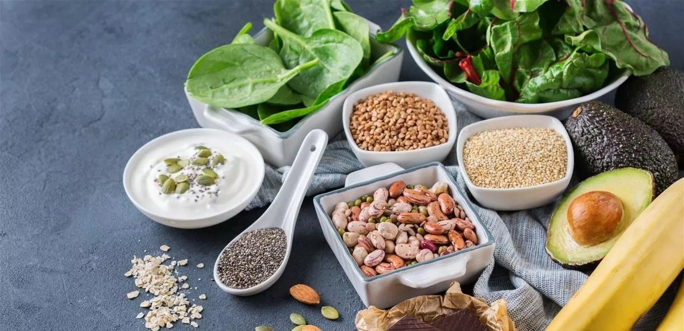 يمكن الحصول على المغنيسيوم عن طريق استهلاك المياه الغنية بالمعادن ومجموعة متنوعة من الخضراوات الورقية والبقوليات والمكسرات والبذور والحبوب الكاملة. تحتوي الأطعمة التالية على:
