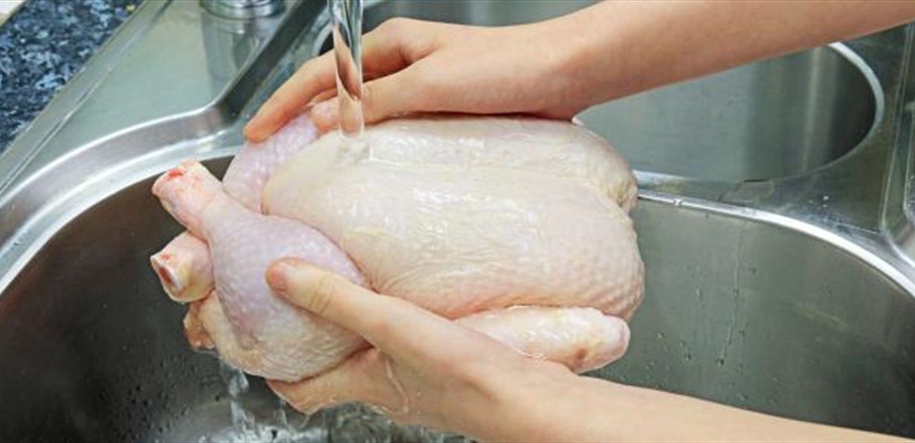 تنصح كل من NHS في المملكة المتحدة وإدارة الغذاء والدواء في الولايات المتحدة بعدم غسل الدجاج النيء، لكن الأبحاث الحديثة أظهرت أن 25% من الناس ما زالوا يفعلون ذلك.