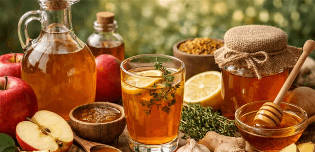 ويحتوي كل من خل التفاح والعسل على مركبات مضادة للأكسدة وخصائص مضادة للميكروبات، قد تساعد في تعزيز المناعة وتقليل قابلية الإصابة بنزلات البرد والإنفلونزا. كما أن خصائصهما المضادة للالتهاب قد تخفف التهاب الحلق والسعال وتساعد على تسييل المخاط.