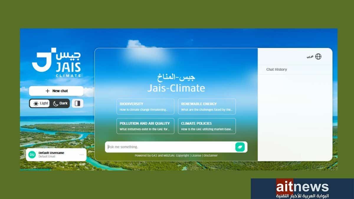 أطلقت جامعة محمد بن زايد للذكاء الاصطناعي (جيس للمناخ) Jais Climate، الذي يعد أول نموذج لغوي كبير ثنائي اللغة في العالم مخصص للمناخ والاستدامة، وذلك من خلال الشراكة التي عقدتها الجامعة وشركة (كور 42)، التابعة لمجموعة (جي 42) القابضة للتكنولوجيا، ويهدف (جيس للمناخ) إلى تقديم المعلومات وتعزيز الإلهام وزيادة الوعي حول تغيّر المناخ والاستدامة.