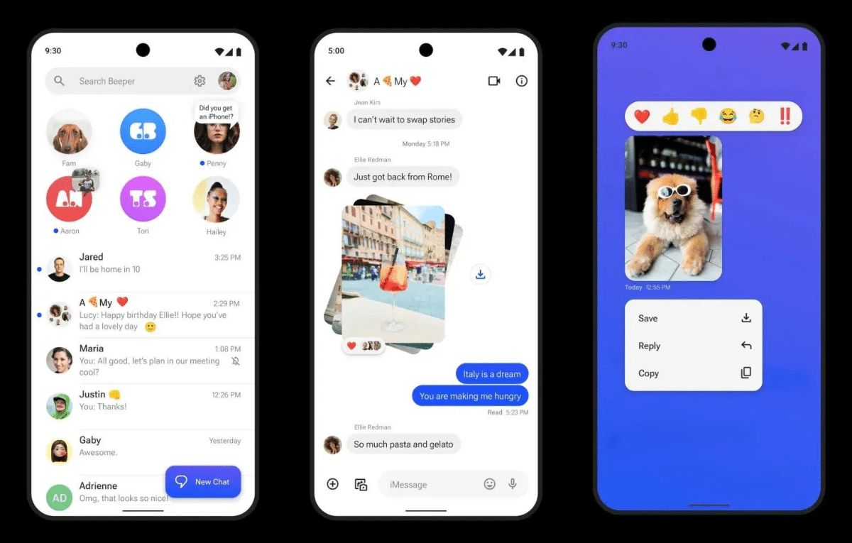 وجلبت Beeper Mini مزايا iMessage لمستخدمي أندرويد، ويشمل ذلك فقاعات الرسائل الزرقاء والقدرة على إرسال الصور ومقاطع الفيديو العالية الجودة.