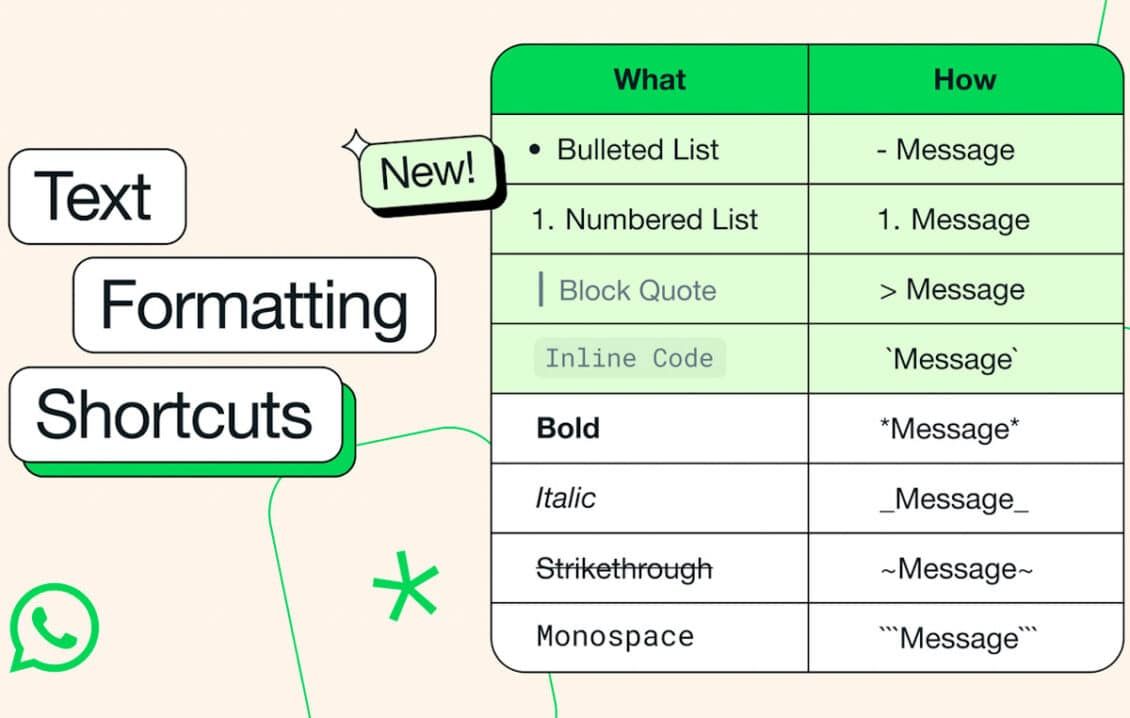 أعلنت منصة المراسلة الفورية واتساب خيارات جديدة يمكن للمستخدمين الاعتماد عليها لتنسيق الرسائل النصية بطرق مختلفة.