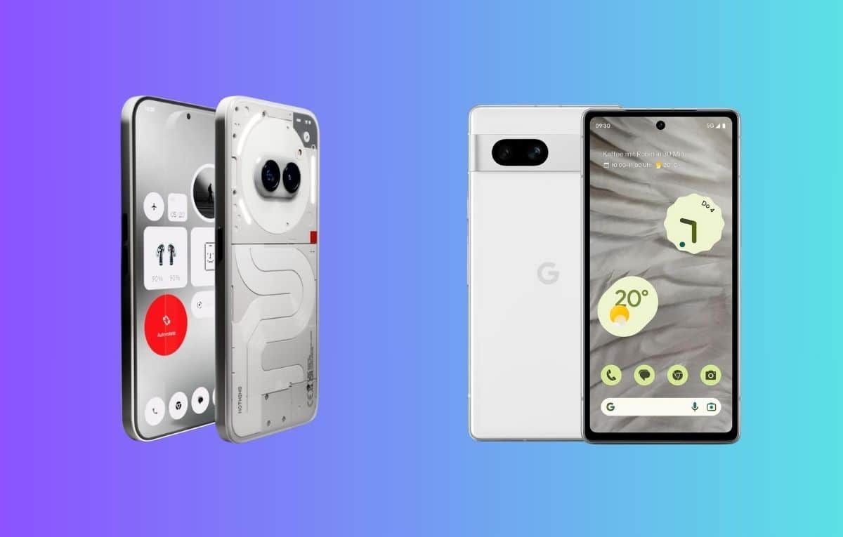 يُباع هاتف Nothing Phone 2a بسعر يبدأ من 329 يورو، ويُباع هاتف جوجل Pixel 7a بسعر يبدأ من 399 يورو.