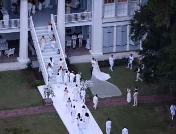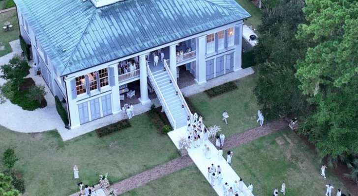 وارتدت جينيفر فستانا أبيضا رائعا، تميز بقصته الخيالية، حيث بدا مع ذيل طويل متدفق وطرحة، والجدير ذكره أن الحفل سيطر عليه اللون الأبيض حيث تم تصوير الضيوف وهم يرتدون ملابس بيضاء بالكامل في أراضي منزل “أفليك”.