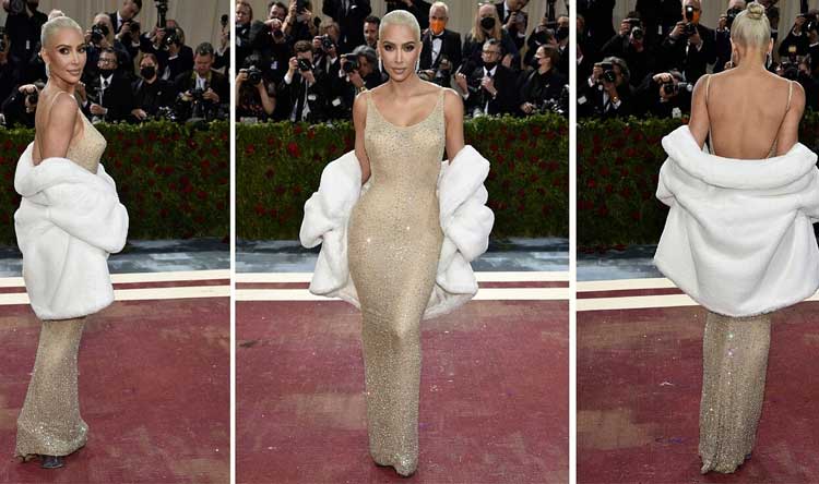 تألقت كيم كارداشيان على السجادة الحمراء في حفل “ميت غالا” لهذا العام، وهي ترتدي ثوباً مرصعاً بالكريستال يعود لمارلين مونرو التي ارتدته قبل 6 عقود عندما غنت في حفل ميلاد الرئيس الأميركي جون إف كينيدي.