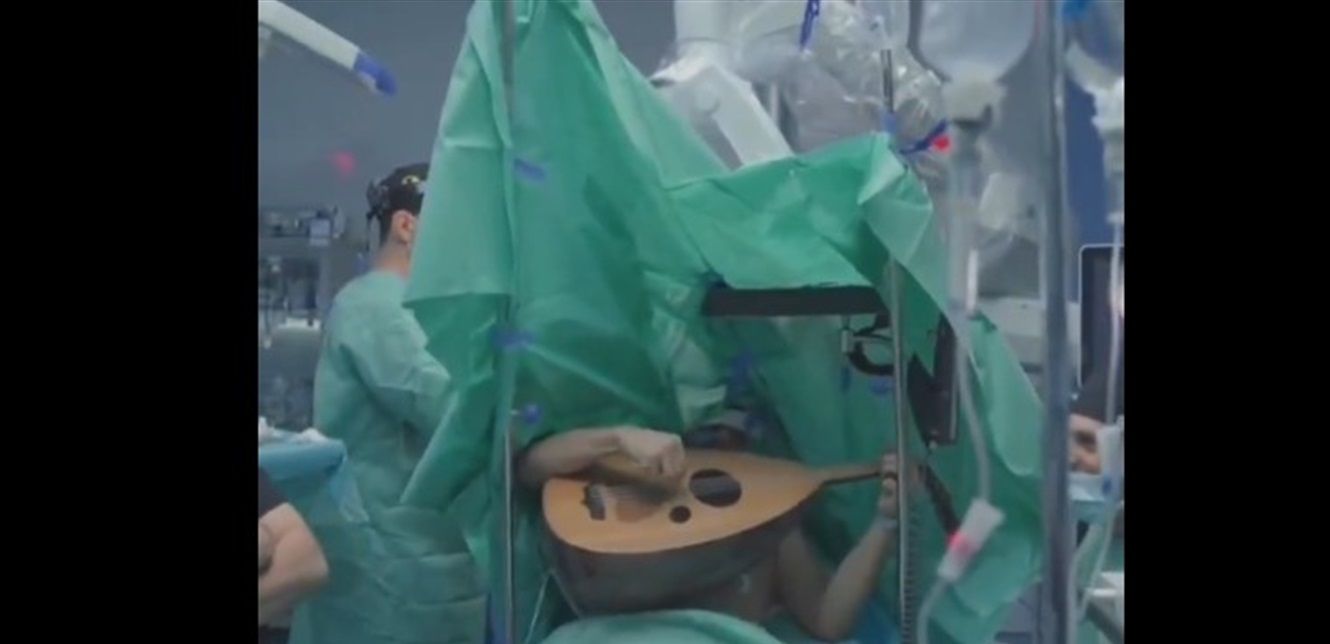 ووثق مقطع فيديو، صُوّر من داخل غرفة العمليات في مستشفى أهلي بمدينة الموصل، جانبا من تلك الإجراءات الطبية الفريدة، حيث أمسك المريض بعوده وعزف ألحانا دون خلل؛ ما منح الجرّاح تأكيدا بنجاح مسار العملية.