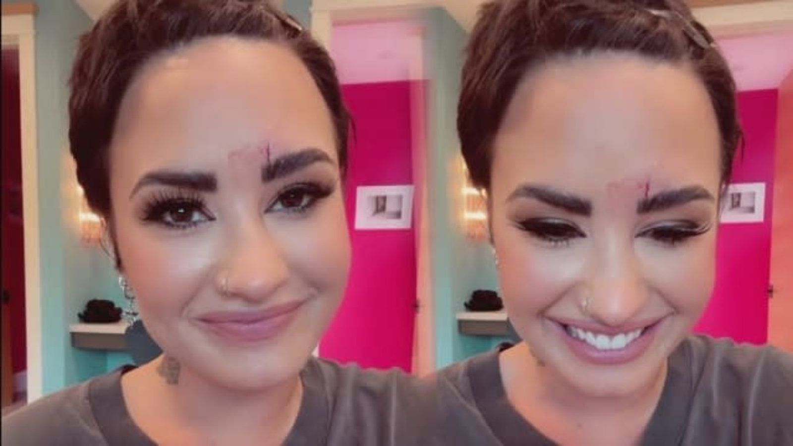 أظهرت ديمي لوفاتو في فيديو على إحدى المواقع التواصل الاجتماعي جرحًا فوق حاجبها ناتج على ما يبدو عن اصطدام بالزجاج وذلك كان قبل اطلالتها في برنامج “Kimmel” لتروج لأغنيتها “Substance” التي ستصدر اليوم الجمعة.