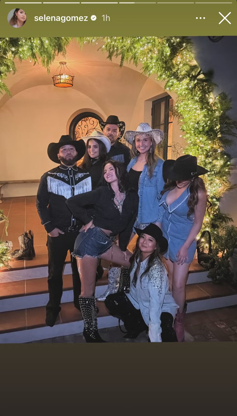 وظهرت غوميز بإطلالة مستوحاة من أجواء رعاة البقر، حيث ارتدت شورت جينز قصيرًا مع حذاء طويل على الطراز الغربي. كما شاركت متابعيها عبر Instagram لقطات من الحفل، من بينها صورة وهي تقبّل زوجها على حلبة الرقص، وعلّقت عليها قائلة: «عيد ميلاد سعيد يا راعي البقر».