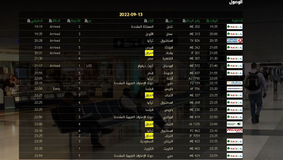 كشفت حركة الطائرات في مطار رفيق الحريري الدولي أن هناك أكثر من 30 رحلةً قادمة إلى بيروت من العراق بين مساء الثلاثاء ويوم غدٍ الأربعاء.