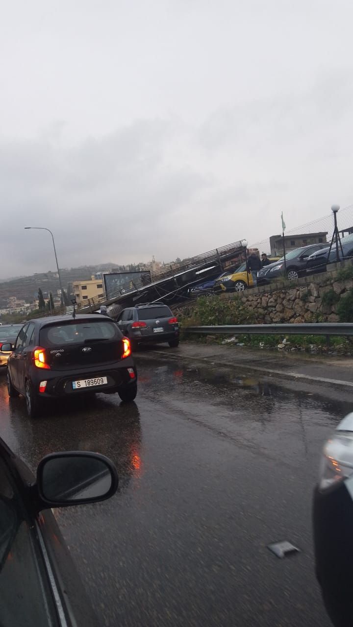 وأدى سقوط لوحة إعلانية كبيرة على معرض سيارات في منطقة الرميلة باتجاه بيروت الى زحمة سير في المنطقة.