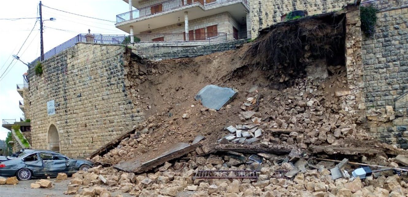 ادى الطقس العاصف والممطر بغزارة في الشوف الى احداث انهيارات صخرية وترابية عدة، ومنها انهيار لحائط كبير في ساحة بيت الدين، جراء السيول وتساقط الأمطار بكثافة وادى إلى تضرر سيارة وأضرار مادية.