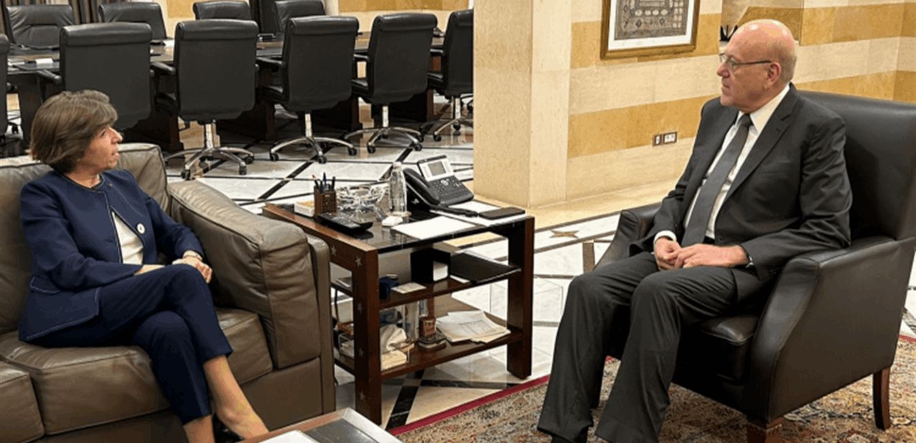 تلقى رئيس الحكومة نجيب ميقاتي اتصالاً هاتفياً من وزيرة الخارجية الفرنسية كاترين كولونا تم خلاله البحث في التطورات الراهنة في لبنان والوضع في غزة والمنطقة.