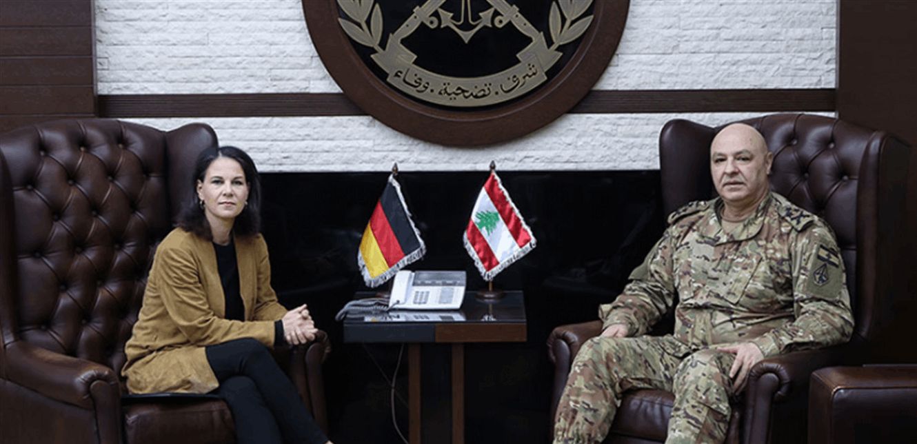 استقبل قائد الجيش العماد جوزاف عون، في مكتبه، في اليرزة، وزيرة الخارجية الألمانيةAnnalena Baerbock ، يرافقها السفير الألماني Kurt Stoeckl- Stillfried ، مع وفد مرافق.