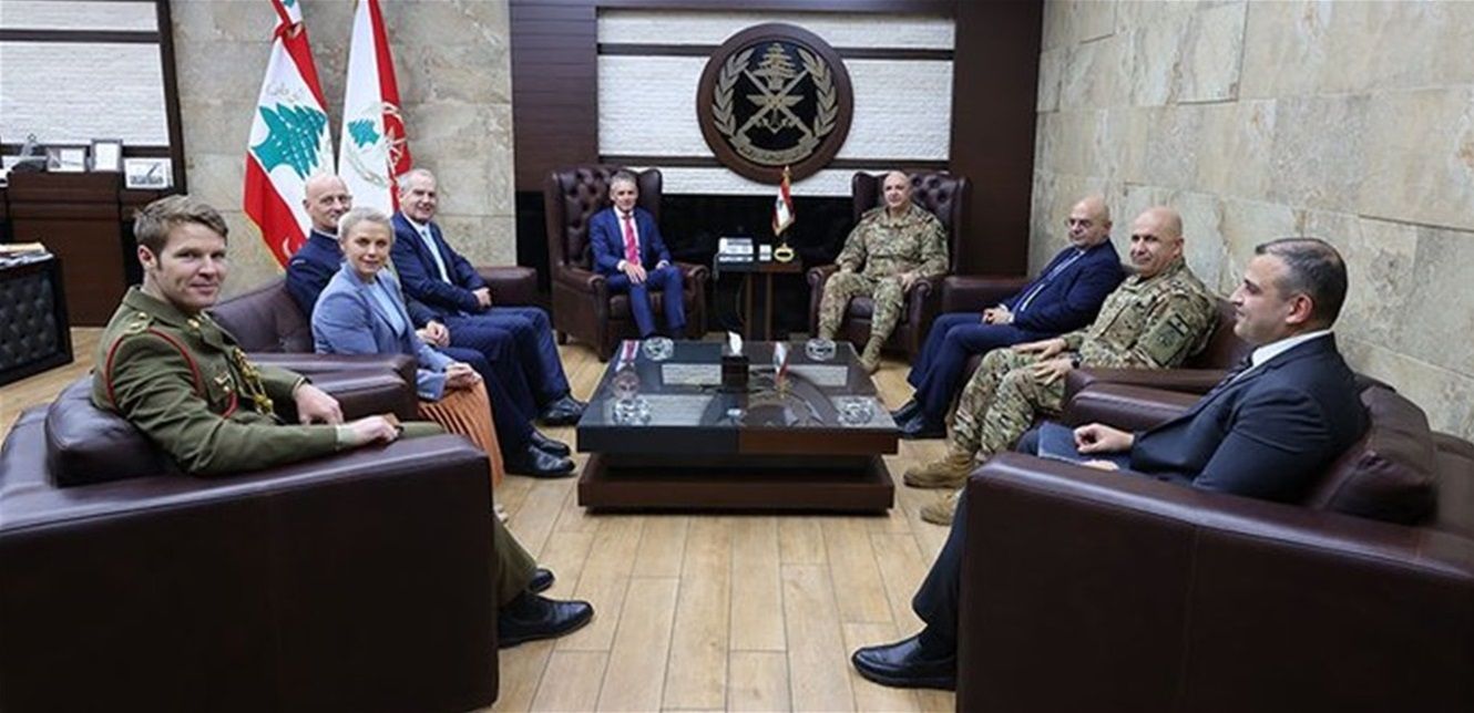 استقبل قائد الجيش العماد جوزاف عون في مكتبه في اليرزة، نائب الأمين العام لوزارة الشؤون الخارجية والتجارة الأوسترالي كريغ ماكلاشلان، يرافقه السفير الأوسترالي أندرو بارنز، وتم البحث خلال اللقاء بالأوضاع العامة في البلد.