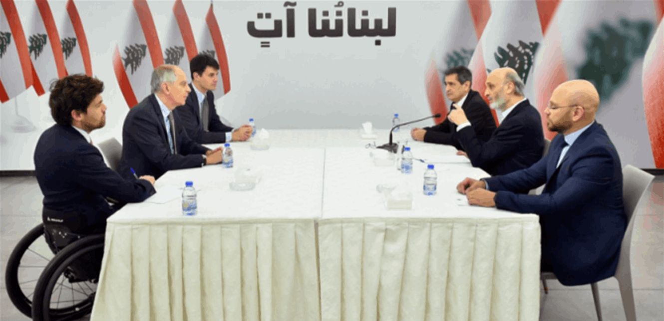 التقى رئيس حزب "القوات اللبنانية" سمير جعجع في معراب، السفير الفرنسي هيرفيه ماغرو يرافقه المستشاران السياسيان Quentin Jeantet وRomain Calvary، في حضور رئيس جهاز العلاقات الخارجية الوزير السابق ريشار قيومجيان، وطوني درويش عن الجهاز.