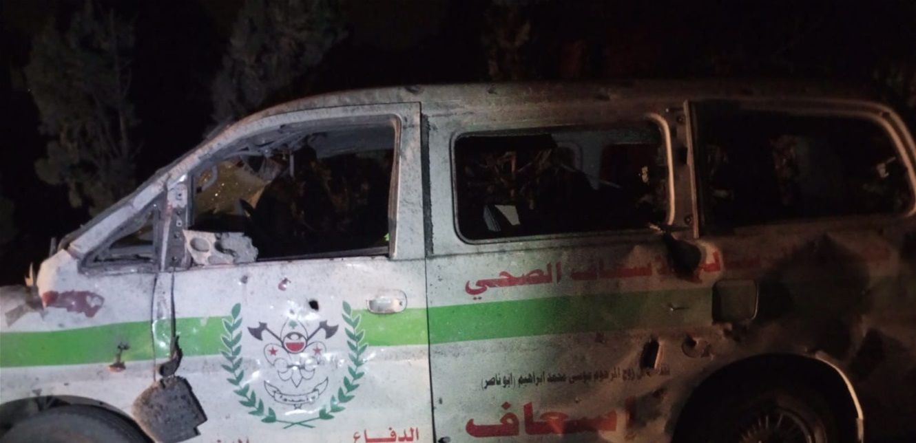 وقالت المصادر إن القصف استهدف سيارة الإسعاف التابعة للجمعية، ولم تسجل أي إصابات في الأرواح.