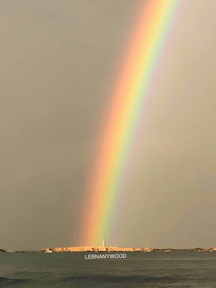 وبحسب الصورة، فإن القوس الملون تركز خلف "زيرة صيدا" الموجودة في عرض البحر.