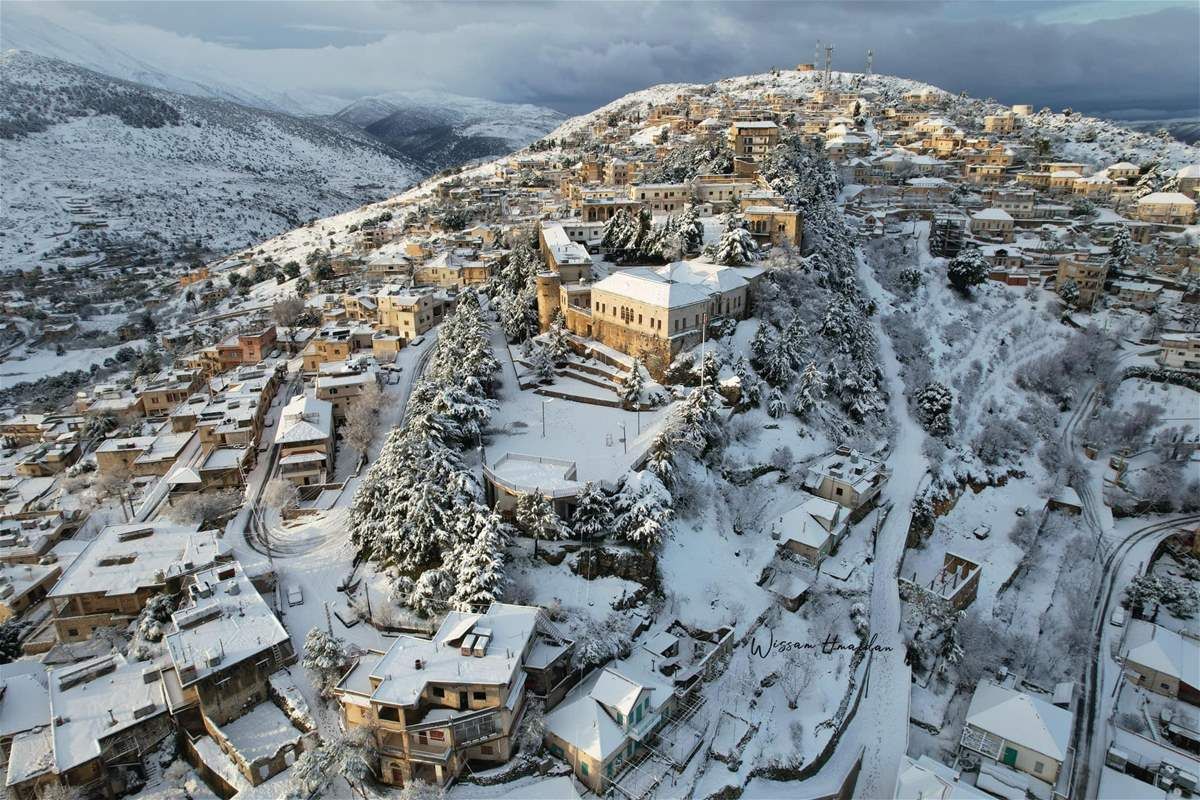 تارتدت منطقة راشيا الوادي ثوبها الشتوي الأبيض، حيث غطت الثلوج طرقاتها ومنازلها القرميدية، في مشهدٍ عكس جمال الطبيعة وروعتها.