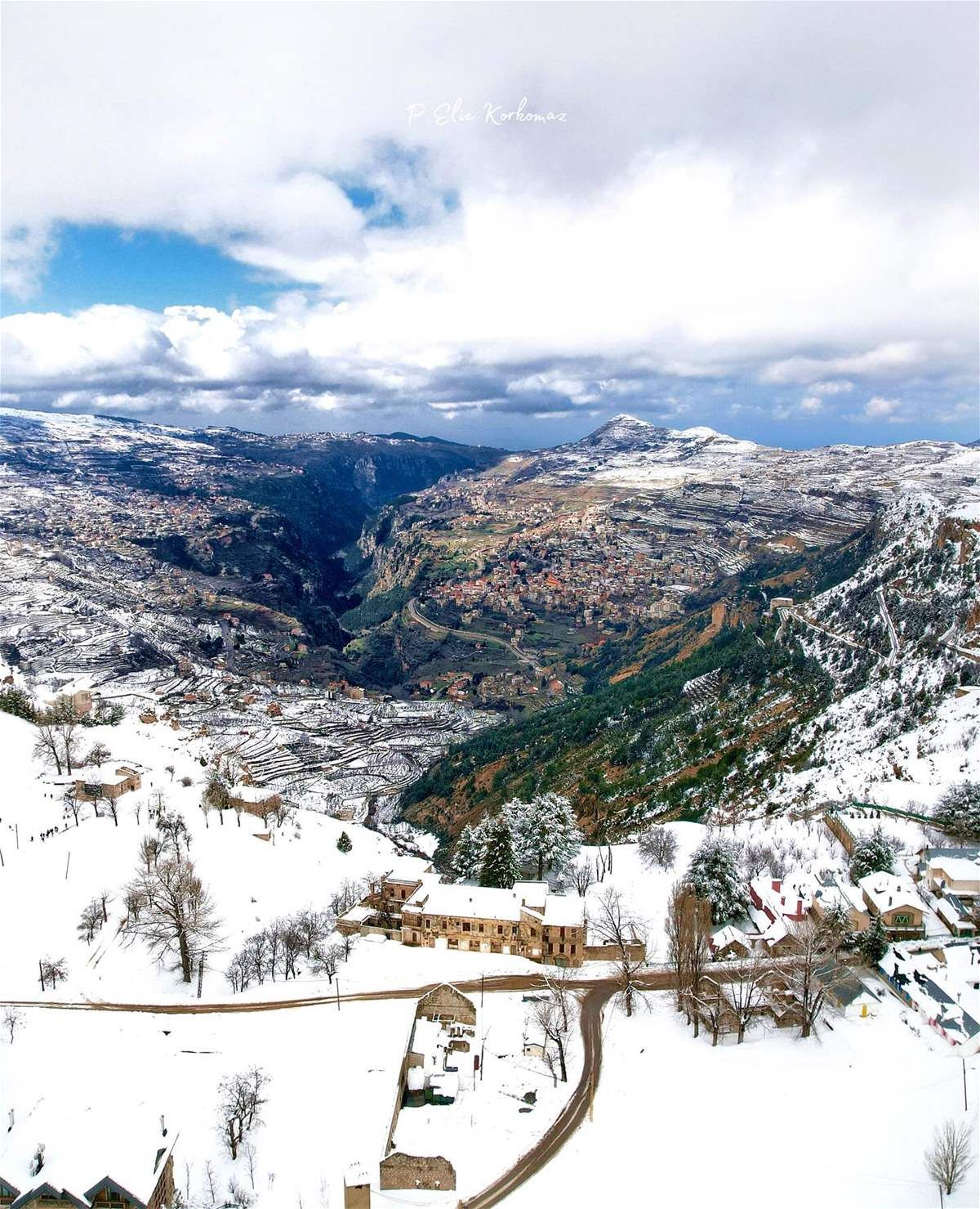 نشر الراهب الماروني الياس قرقماز مجموعة صورٍ توثق جمالية منطقة بشرّي التي تغمرها الثلوج البيضاء.