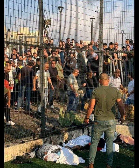 وأظهرت الصور المكان الذي طاله الإستهداف والجرحى والقتلى الذين سقطوا داخل ملعب لكرة القدم.