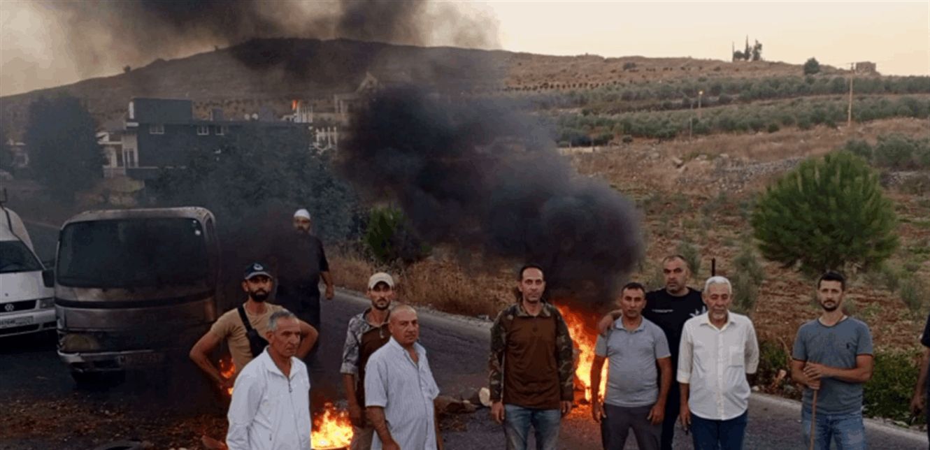 قطع العسكريون المتقاعدون الطريق بالإطارات المشتعلة في بلدة كوكبا في قضاء راشيا.