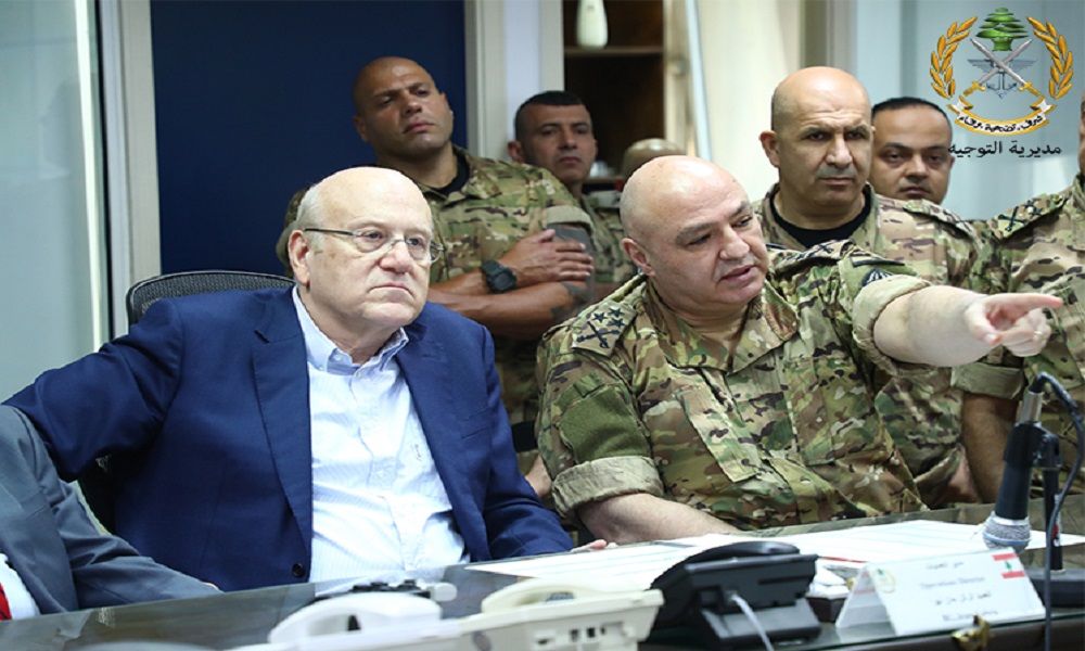 أكد قائد الجيش العماد جوزاف عون خلال تفقده غرفة العمليات في قيادة الجيش بحضور رئيس الحكومة نجيب ميقاتي ووزير الدفاع موريس سليم أن “إيمان العسكريين وإرادتهم الصلبة هما الحافز لاستمرارهم في تنفيذ مهماتهم على الرغم من كل الظروف الصعبة.”