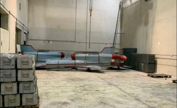 وبحسب الصورة المنتشرة، تظهر منشأة عسكرية كبيرة، وبداخلها عتاد عسكري وطائرة مسيَّرة من طراز توبوليف Tu-143 “ريس”، وهي طائرة استطلاع عسكرية سوفياتية الصنع تعود إلى أواخر سبعينيات القرن الماضي.