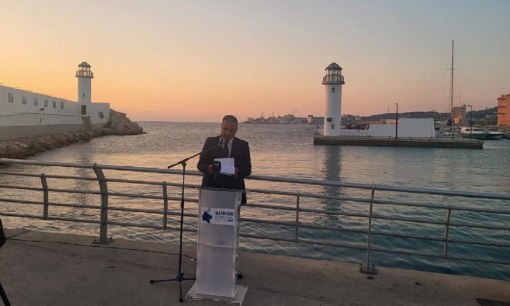 واضاف: “شأنها في ذلك شأن هذا المرفأ الذي نحن واقفون أمامه، الذي مر به صيادون وتجار ومحاربون، وانطلقت مراكب منه وعادت إليه، منذ أيام فينيقيا… إلى اليوم، ها هو الآن يستضيف فصلا مهما من فصول الحراك السياحي والثقافي فيجعل الموجة صورة والحجر إطارا لها”.