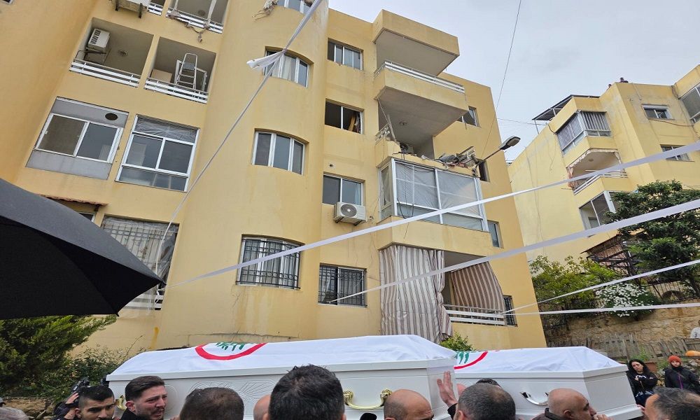 ودّعت عين سعادة رئيس مركز القوات اللبنانية في يحشوش، الشهيد بيار معوّض وزوجته، حيث وصل نعشاهما إلى أمام المبنى الذي استُهدف ليل الأحد.