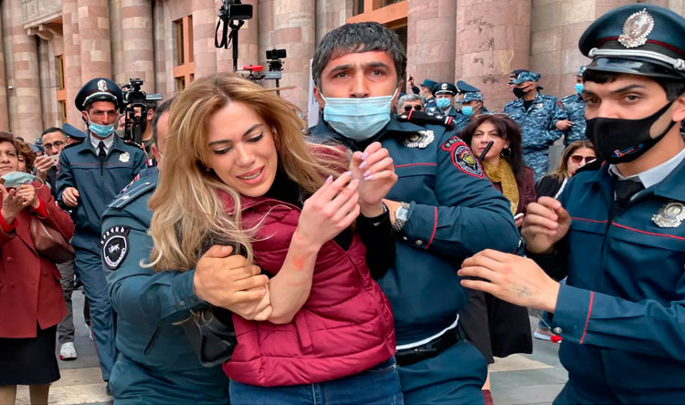 تستمر الاحتجاجات في العاصمة الأرمينية يريفان، والشرطة تقوم باعتقال المتظاهرين.