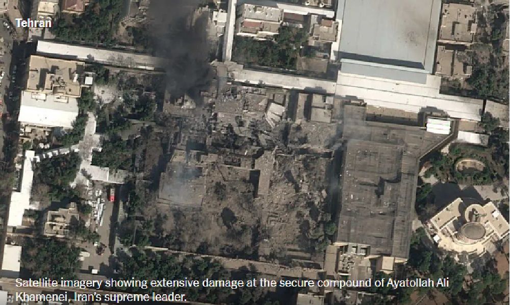أظهرت صورة التُقطت بالأقمار الصناعية، مقر المرشد الإيراني علي خامنئي بعد تعرضه لاستهداف أميركي إسرائيلي صباح السبت.