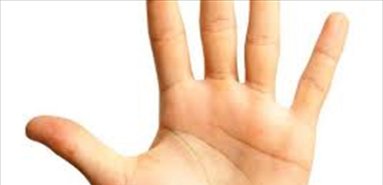 ولإجراء "اختبار كف الإبهام"، ارفع إحدى يديك وحافظ على راحة اليد منبسطة. ثم قم بمد الإبهام إلى أقصى حد ممكن عبر راحة اليد.