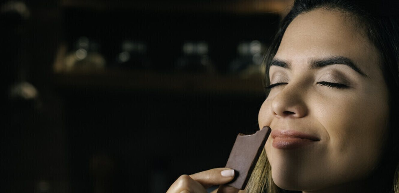 وتُقدم الدراسات السريرية الحديثة أدلة دامغة على خصائص الشوكولا المُحسّنة للمزاج، حيث أفادت تجربة عشوائية مُحكمة أن تناول 30 غراماً يومياً من الشوكولا الداكنة بنسبة 85% يُحسّن المزاج ويزيد من تنوع ميكروبات الأمعاء، مما يُشير إلى أن الشوكولا الداكنة تُخفف من حدة المشاعر السلبية عبر محور الأمعاء والدماغ.