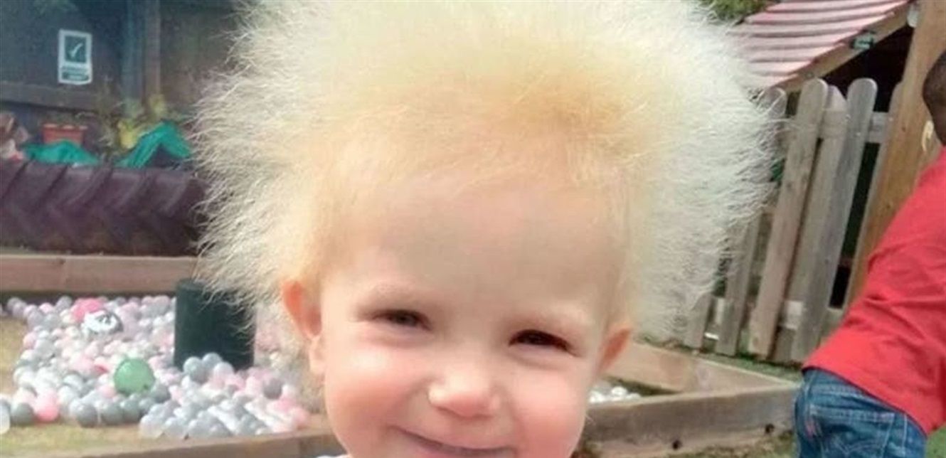 تم تشخيص طفلة بريطانية يبدو شعرها كأنه ممسحة، بأنها واحد من 100 شخص فقط في العالم يعانون من "متلازمة الشعر غير القابل للتمشيط بشكل مسطح"، والتي يطلق عليها أيضًا متلازمة "الشعر الزجاجي المغزول" ويشار إليها اختصارًا بـUHS، وفقًا لما نشرته مجلة "نيوزويك" Newsweek الأميركية.