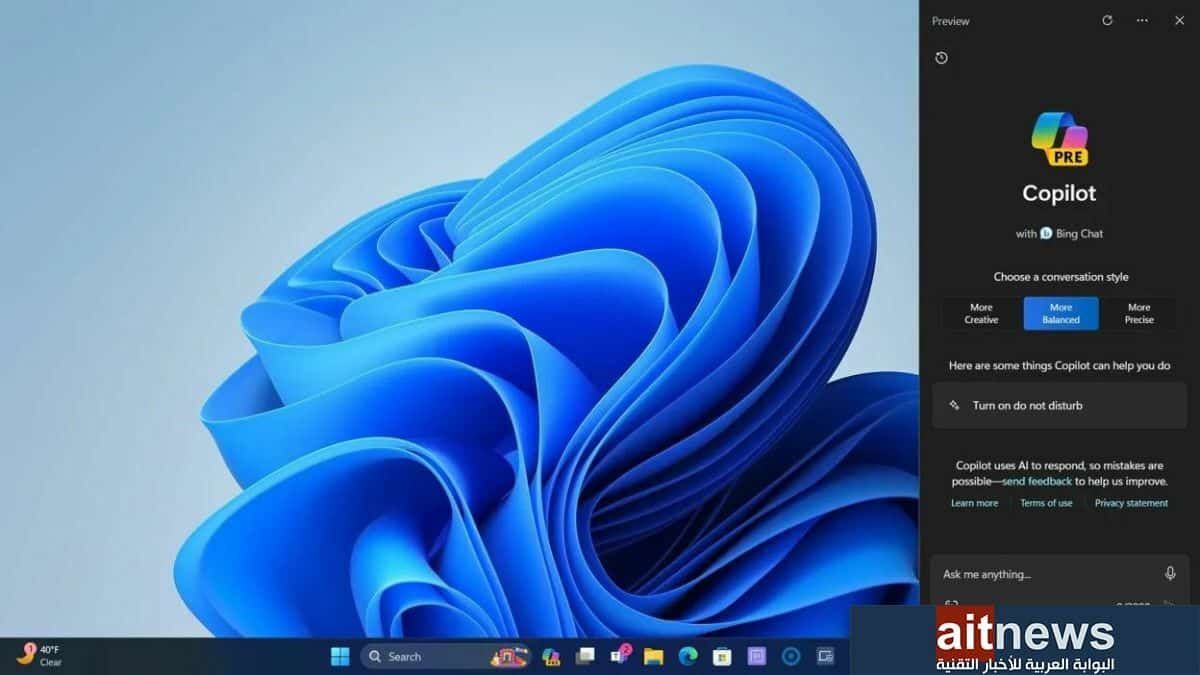 4- إدماج المساعد Copilot في نظام ويندوز 11: