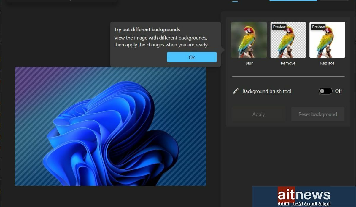 https://twitter.com/PhantomOfEarth/status/1723346445640597763 مايكروسوفت مزايا الذكاء الاصطناعي المشابهة لصور جوجل إلى تطبيق الصور لنظام التشغيل ويندوز 11، إذ تختبر عملاقة التكنولوجيا ميزة جديدة تستخدم الذكاء الاصطناعي لطمس الخلفية أو إزالتها أو استبدالها وحفظ الصورة بتنسيق png.