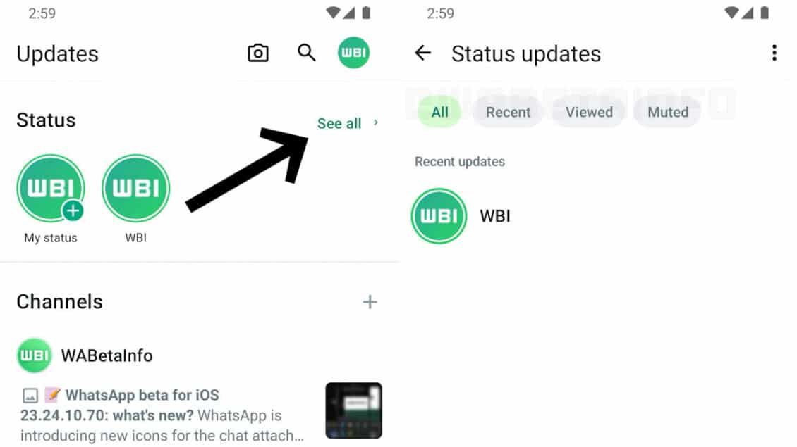 ويتيح تصنيف “الكل All” عرض كافة الحالات من جهات الاتصال، كما يسمح تصنيف “الأخيرة Recent” بعرض أحدث الحالات التي جرى مشاركتها، في حين يمكن الوصول إلى الحالات التي شوهدت بالفعل عبر تصنيف “المعروضة Viewed”، أما جهات الاتصالات المخفية حالاتهم فتظهر في تصنيف “المكتومة”.