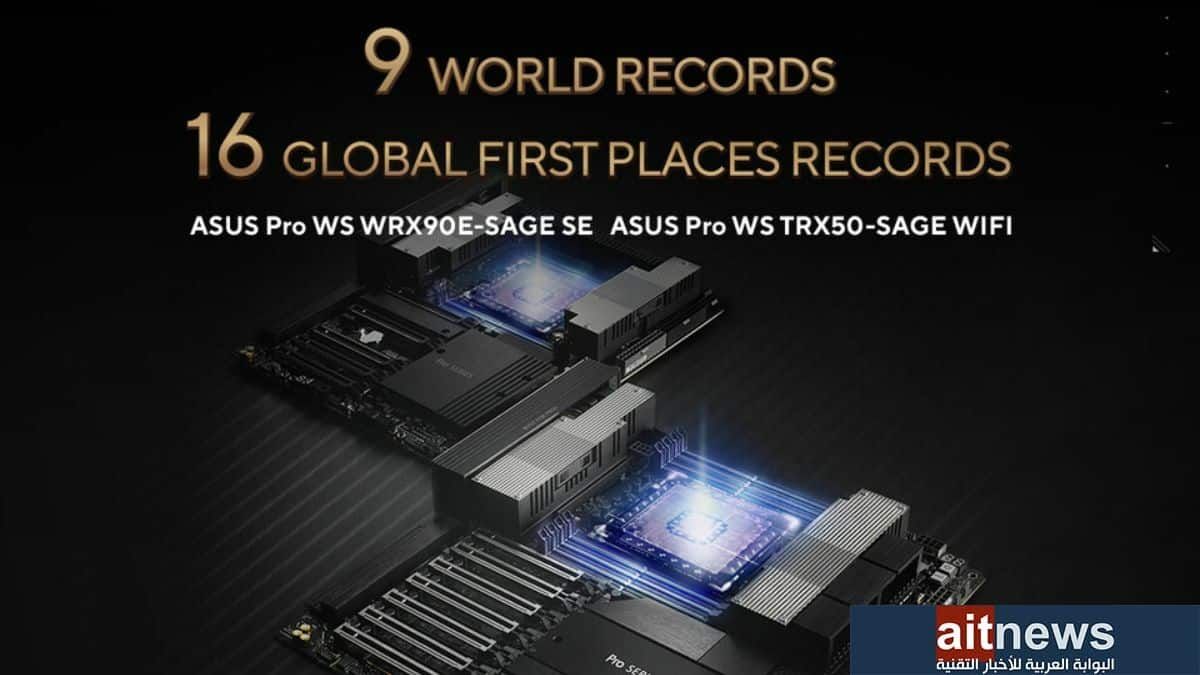 أعلنت أسوس أن مجموعة من نخبة محترفي كسر السرعة قد سجلت تسعة أرقام قياسية عالمية، وحققت المركز الأول 16 مرة في مجموعة متنوعة من اختبارات معايير الأداء مع اللوحات الأم المخصصة لمحطات العمل Pro WS WRX90E-SAGE SE و Pro WS TRX50-SAGE WIFI.