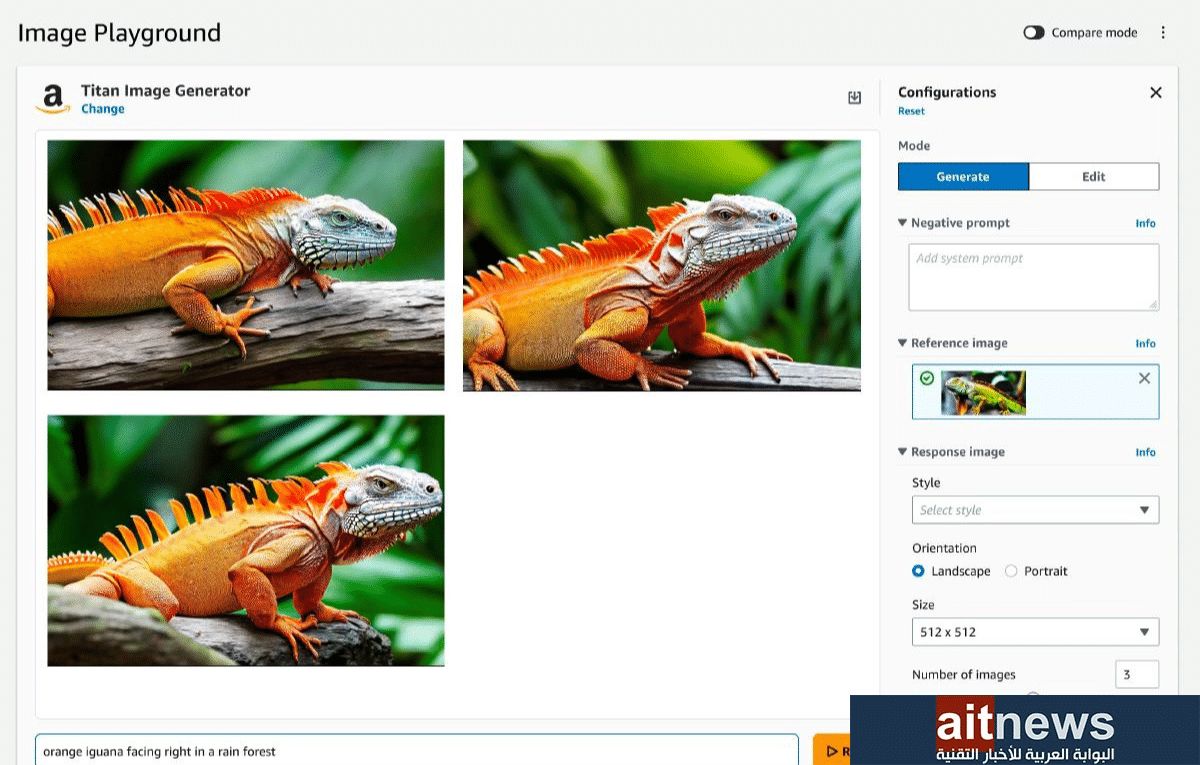 وجاء الإعلان خلال فعاليات مؤتمر re:Invent، ويستطيع Titan Image Generator إنشاء صور واقعية بجودة الاستوديو، ومن المفترض أن يحتوي على حواجز حماية مضمنة ضد السمية والتحيز.