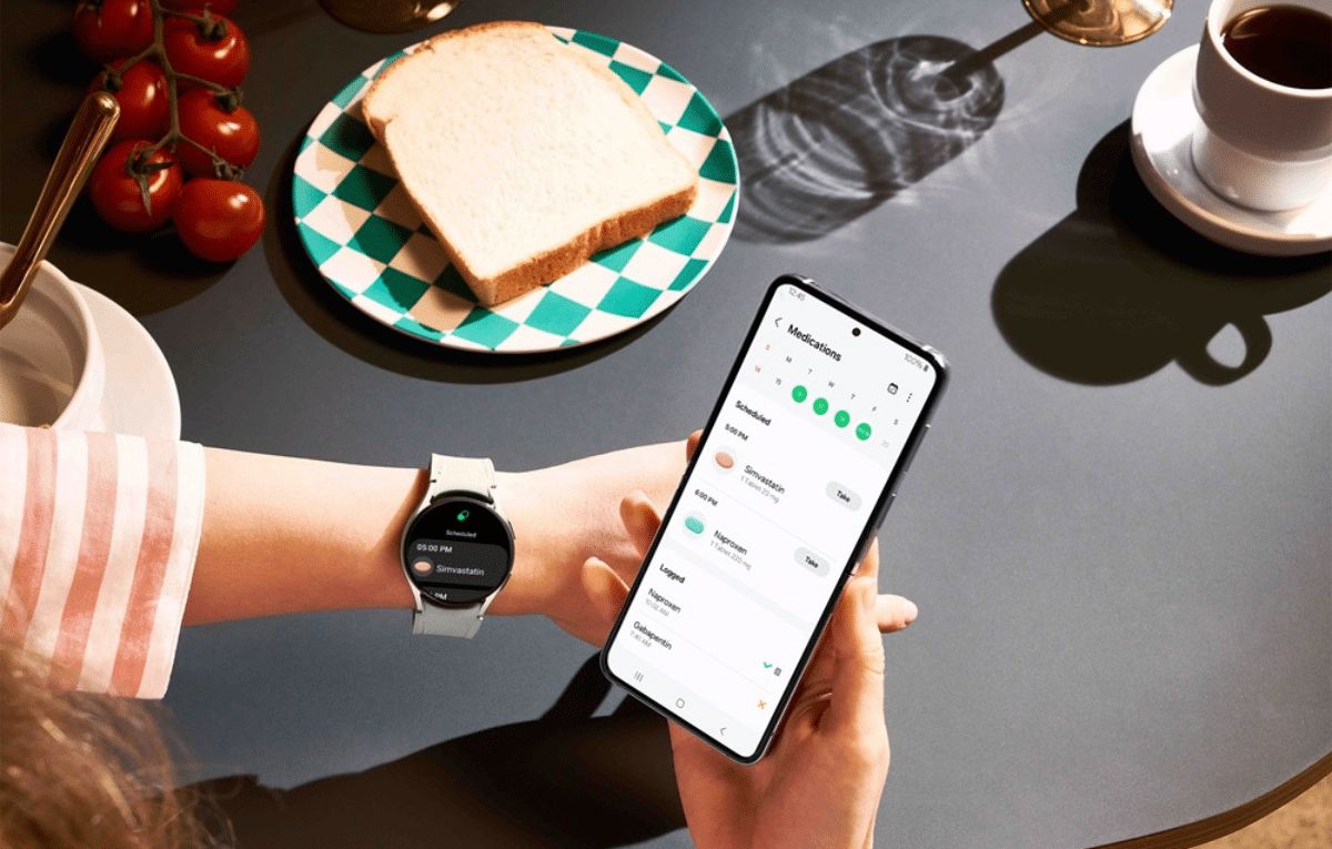 ويتلقى مستخدمو ساعة سامسونج الذكية أيضًا تذكيرات عبر معصمهم مباشرة حتى يتمكنوا من متابعة جداول الأدوية، حتى عندما يكونون بعيدين عن هواتفهم.