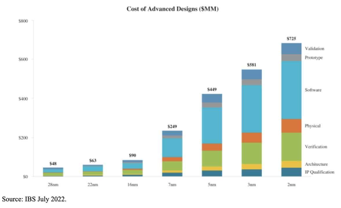 أرقام https://twitter.com/TheTranscript_/status/1694122303691624819 تؤكد أيضًا أن تطوير البرمجيات وحده يكلف مبلغ وقدره 314 مليون دولارٍ، وعمليات التحقق من جودة التصنيع يتطلب مبلغ وقدره 154 مليون دولارٍ، وتصميم الرقاقات كذلك بدقة تصنيع 2 نانومتر يتطلب موهبة وخبرة طويلة من قبل فريق المهندسين.