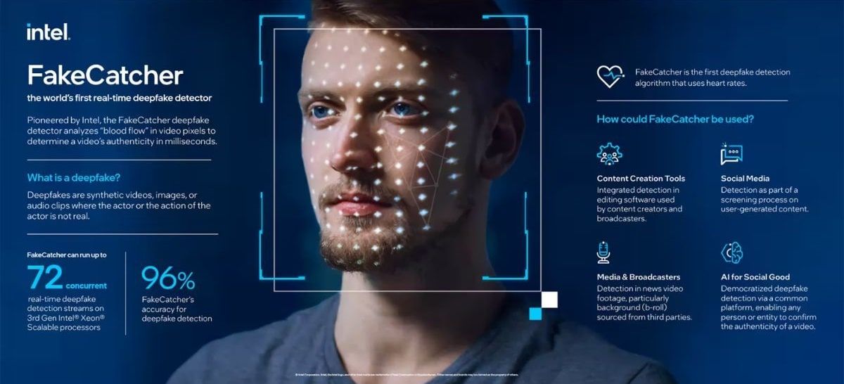 ومع زيادة خطورة هذه التقنية المضللة ظهرت جهود مضادة لمواجهتها، إذ تعمل شركات التكنولوجيا والحكومات على تطوير أدوات لكشف التزييف العميق بمساعدة الذكاء الاصطناعي أيضًا، فعلى سبيل المثال، طورت شركة إنتل برنامجًا يُسمى (FakeCatcher) يبحث عن أدلة حقيقية في مقاطع الفيديو من خلال تقييم ما يجعلنا بشرًا، وهو (تدفق الدم)، فعندما تضخ قلوبنا الدم، يتغير لون عروقنا، لذلك يجمع البرنامج إشارات تدفق الدم من جميع أنحاء وجه الشخص الذي يتحدث في الفيديو، وتترجم الخوارزميات هذه الإشارات إلى خرائط زمانية مكانية، ومن ثم، باستخدام التعلم العميق يمكن اكتشاف كون الفيديو حقيقيًا أم مزيفًا، ومع ذلك، لا تزال فاعليته محل نقاش.