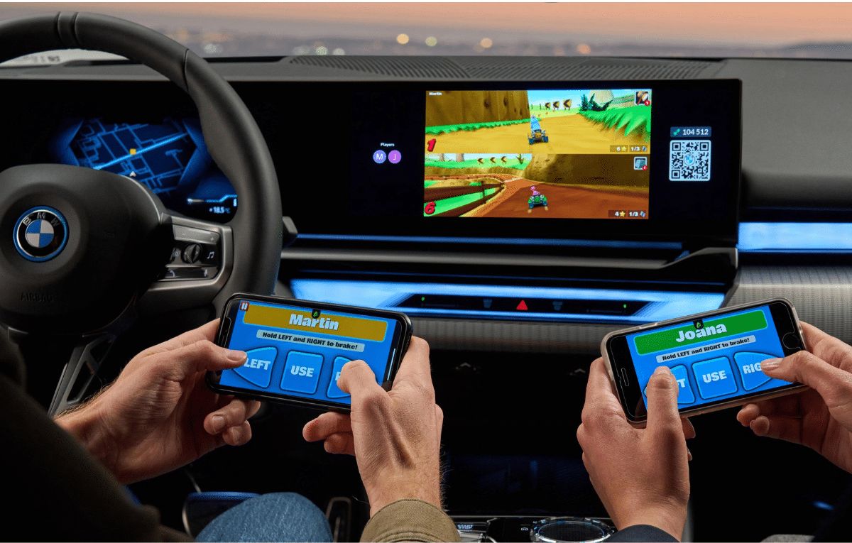 دخلت مجموعة بي إم دبليو، ويشمل ذلك ميني كوبر ورولز رويس، عالم الألعاب داخل السيارة، إذ يستخدم الجيل التاسع من نظام تشغيل الشركة تطبيقات وألعاب خارجية في متجر Connected Drive لتقديم التجربة للعملاء.