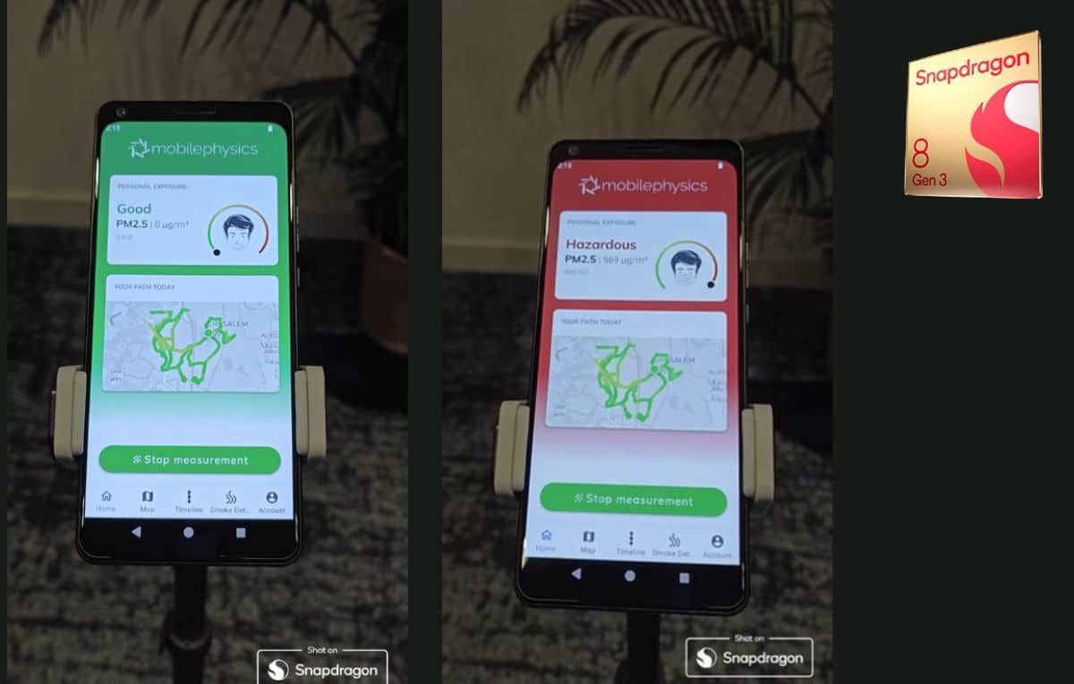 وقد تعاونت الشركة مع شركتي (STMicroelectronics) وكوالكوم لإدماج هذه التقنية في معالج (Snapdragon 8 Gen 3) الجديد، لتصبح بذلك خاصية قياس جودة الهواء مدمجة في الهاتف الذكي لأول مرة.
