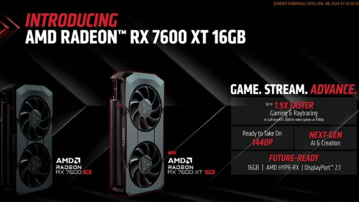 بعد أن كشفت AMD عن البطاقة الرسومية Radeon RX 7600 XT ضمن معرض CES 2024، أصبحت هذه البطاقة الرسومية ابتداءً من هذه اللحظة متاحة للبيع في الأسواق بسعر يبدأ من 329 دولارًا.