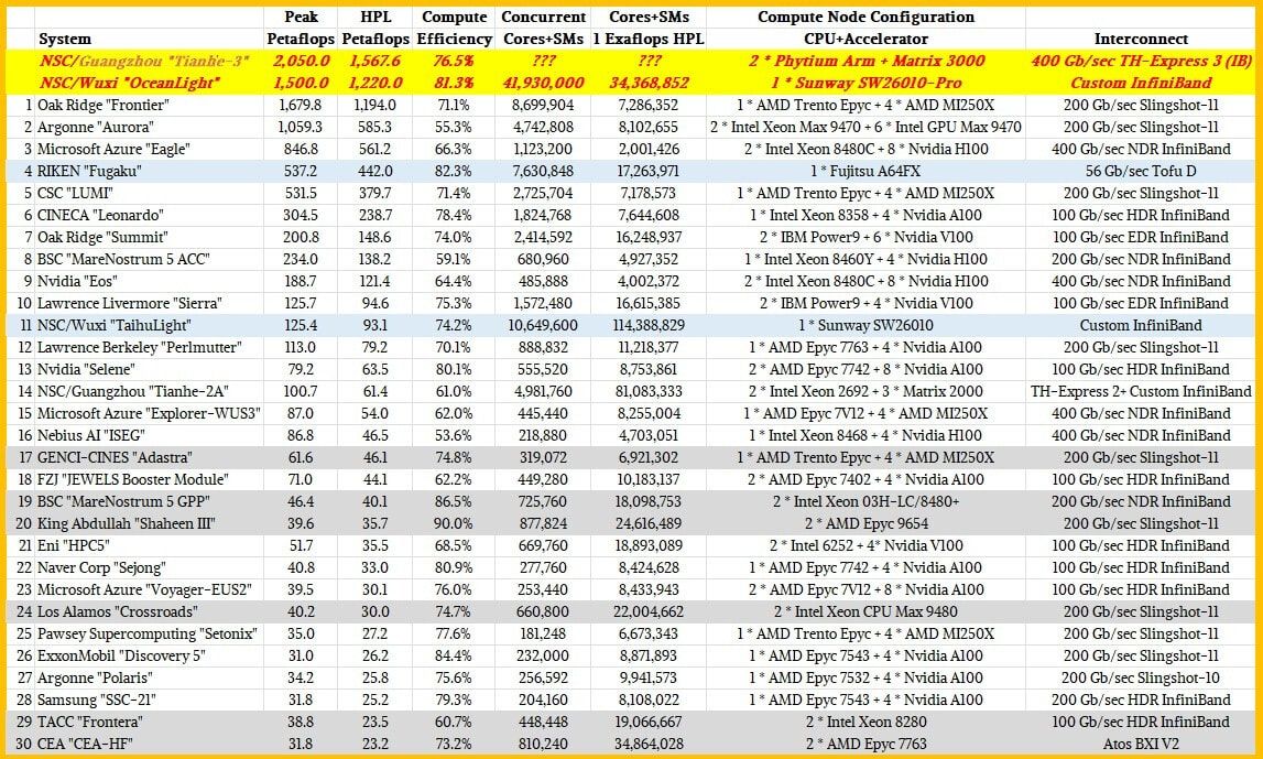 يقال إن الحاسوب الفائق Tianhe-3 قد يكون أسرع حاسوب فائق في العالم، بسبب استخدامه للمعالج الجديد MT-3000 الذي صممته الجامعة الوطنية لتكنولوجيا الدفاع (NUDT) المتخصصة في مجال تطوير الحاسوب الفائق وبرنامج الفضاء الصيني.