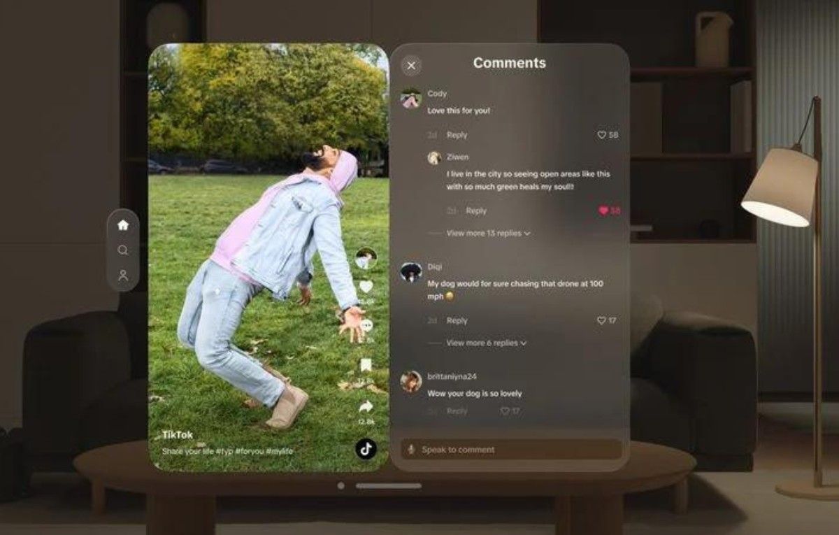 ويُعد تطبيق تيك توك أول تطبيق أصلي لمنصة اجتماعية كبرى يصل إلى نظارة فيجن برو، في انتظار إطلاق تطبيقات أخرى مهمة مثل يوتيوب وفيسبوك وإنستاجرام وغيرها.
