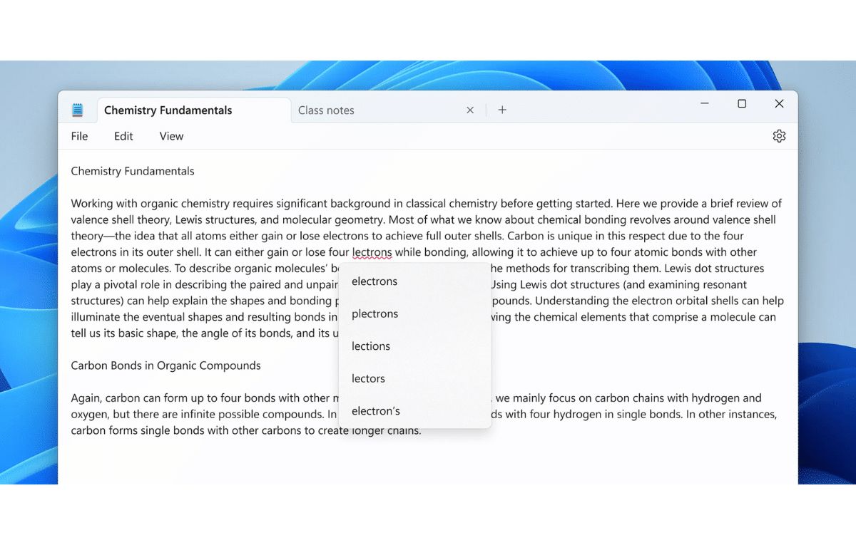 وجاء في إعلان مايكروسوفت: “أصبح بإمكان تطبيق المفكرة مع هذا التحديث تسليط الضوء على الكلمات المتضمنة أخطاء إملائية ويقدم اقتراحات حتى تتمكن من تحديد الأخطاء وتصحيحها بسهولة، ونقدم أيضًا ميزة التصحيح التلقائي التي تعمل على إصلاح أخطاء الكتابة الشائعة أثناء الكتابة”.