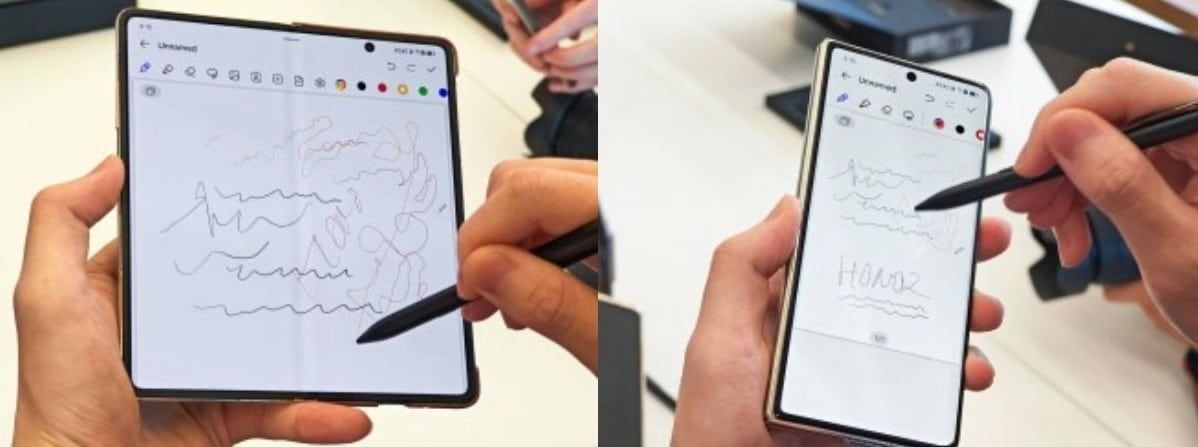 بالإضافة إلى كل ذلك؛ يمتاز الهاتف بأنه يدعم استخدام القلم الإلكتروني في كل من الشاشة الداخلية والخارجية، وهذه مزية يتفوق بها على هاتف سامسونج القابل للطي الذي يدعم استخدام قلم (S Pen) في الشاشة الداخلية فقط.
